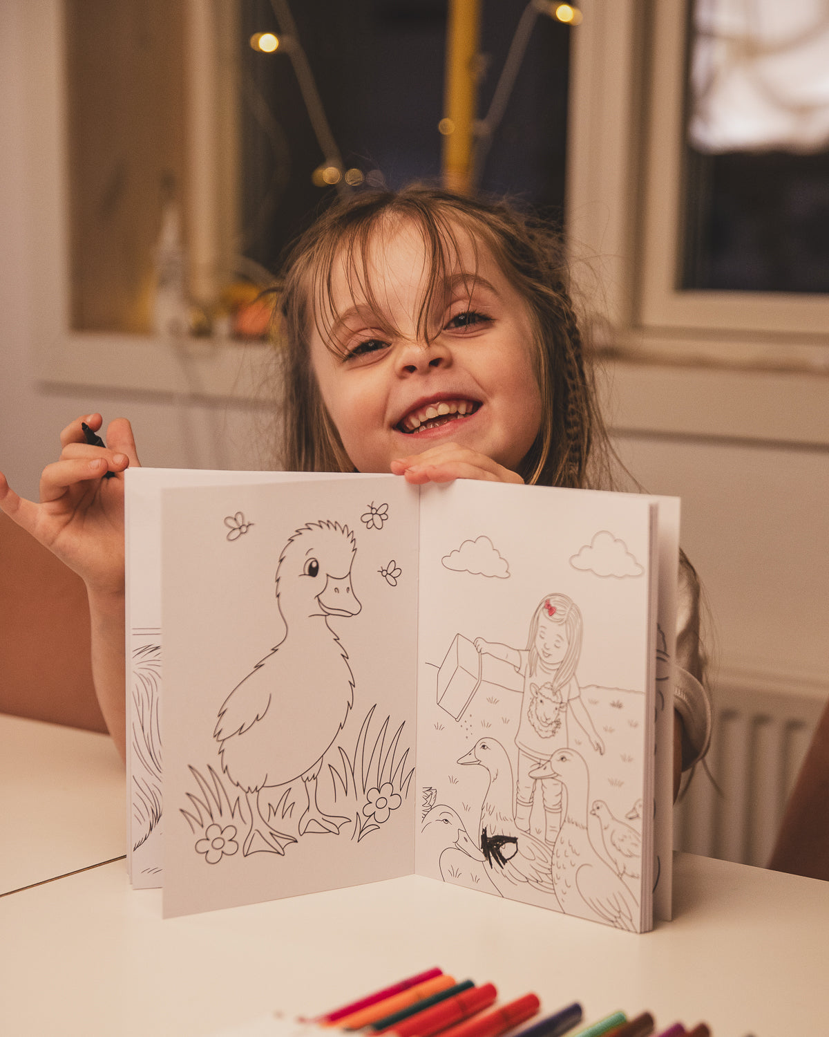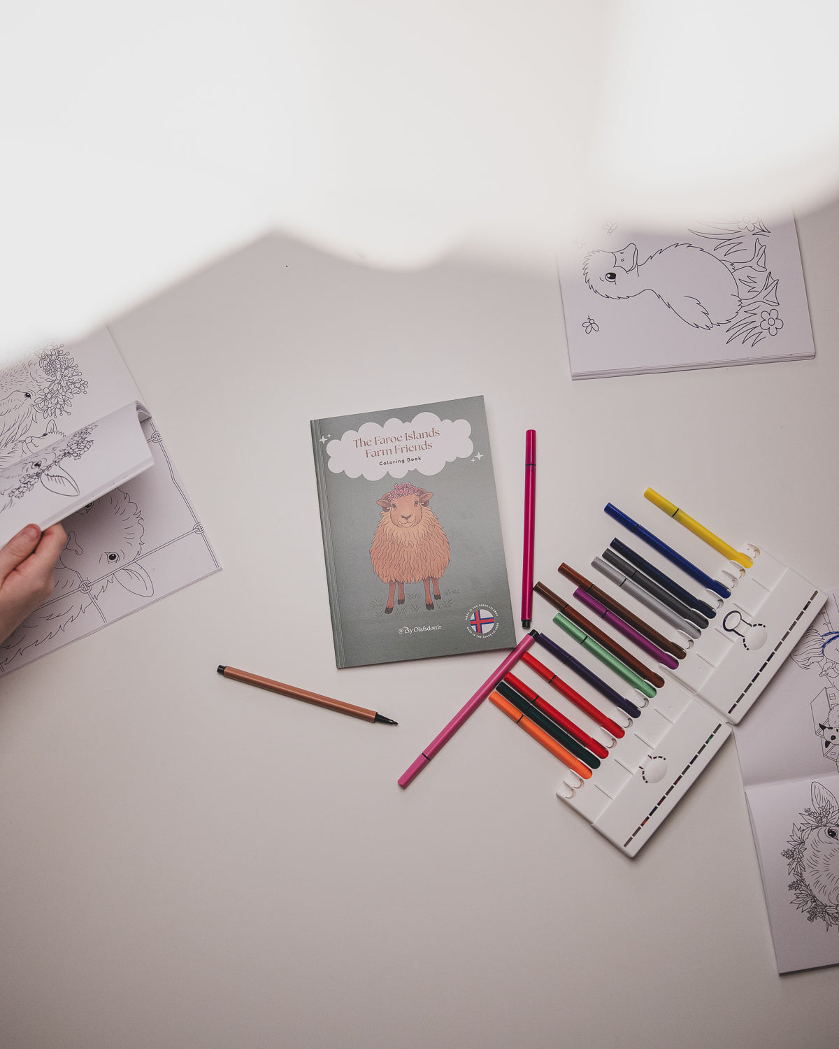 We have decided to sell both actual printed coloring books, 100% made and printed in The Faroe Islands, on 200gr thick quality paper ( so no coloring showing through the pages) and in a lay flat design so that it is easier for kids to color in the pages.