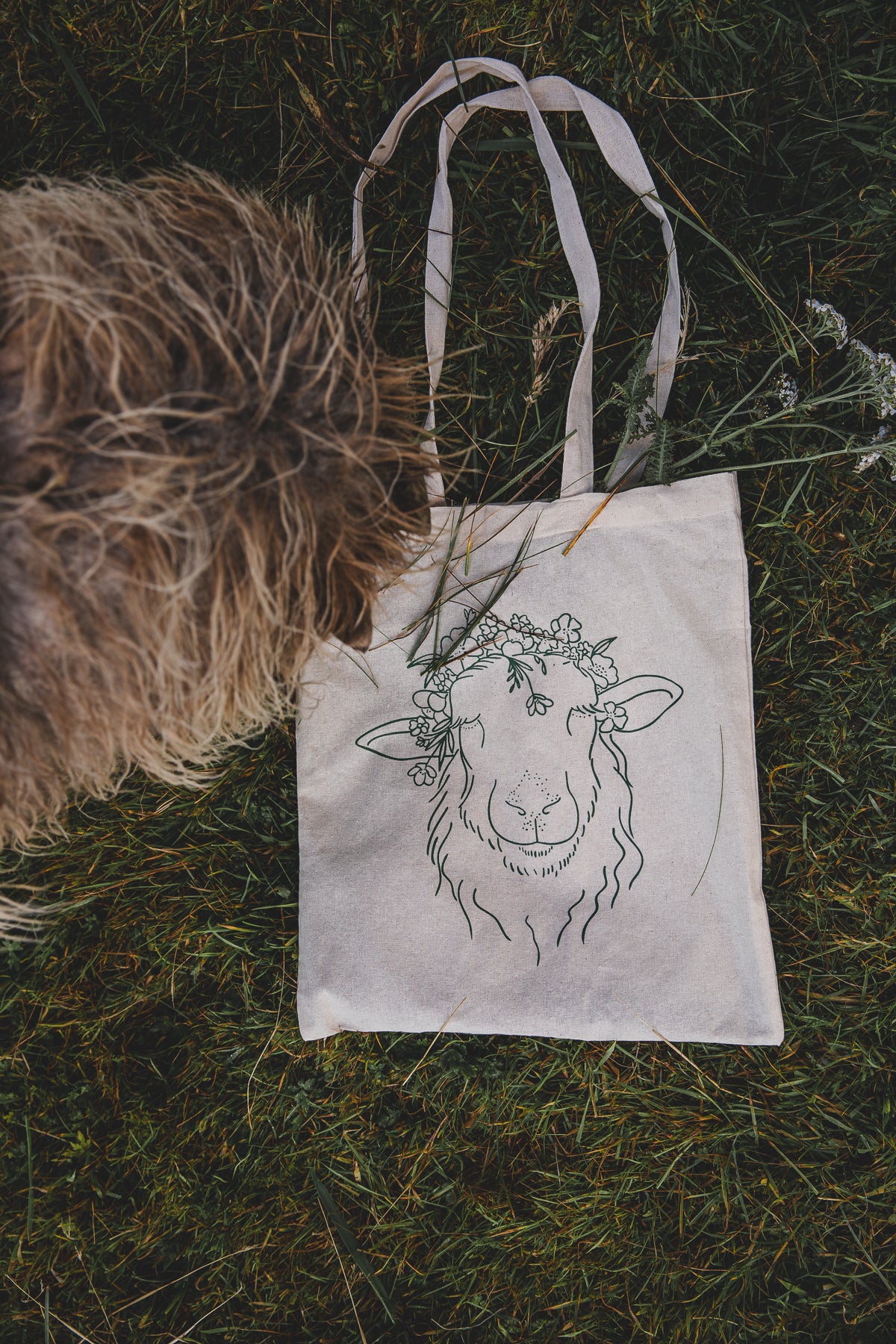 Finally ! A By Olafsdóttir Tote Bag - this item has been much requested and a long time coming. The flower crown sheep on this tote is a representation of the original Flower Crown Sheep Bambi 💕 Bambi was a very special sheep with a very special story - She was born blind and rejected by her mom for that very reason, so she grew up as a bottle fed sheep growing up with humans mainly - Even though Bambi was blind, she was a true fighter 💪🏼 She learned to navigate on her own using her other senses ; To listen for familiar sounds, to feel the ground and make her own paths and to smell her surroundings and follow her senses. To me Bambi was more than a sheep, she was the very reason I ended up doing Flower Crown sheep photography as I would love spending time with her and she me, she would let me take her picture and be very patient, she loved when I put flowers in her wool and the flower crown photos where actually coincidental. I posted a picture of her on Instagram and suddenly people started asking if they could buy prints, one thing lead to another and here we are now. Bambi is the reason I am here - Sadly she died at the age of 3 from most likely being born with a brain tumor according to the vet. Wanna know another fact? The year Bambi died was the first year I could manage an income on the farm without being dependent on her as a sole model, it was also the year I fell pregnant with our miracle baby ML❤️ after years of infertility and being told we would never have a child of our own - the magical part, my due date was exactly a year after Bambi died 🥹 Bambi was a true Angel sent from above 🪽